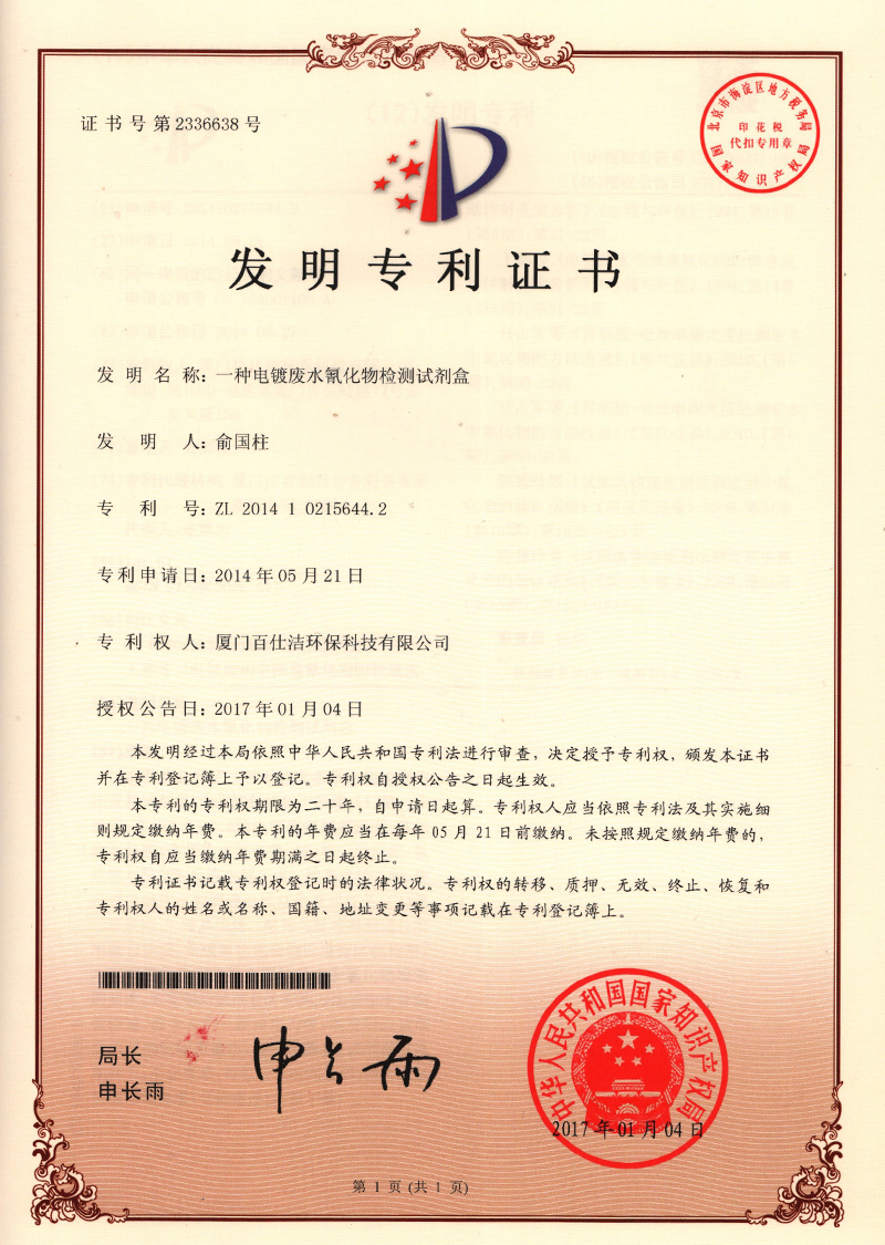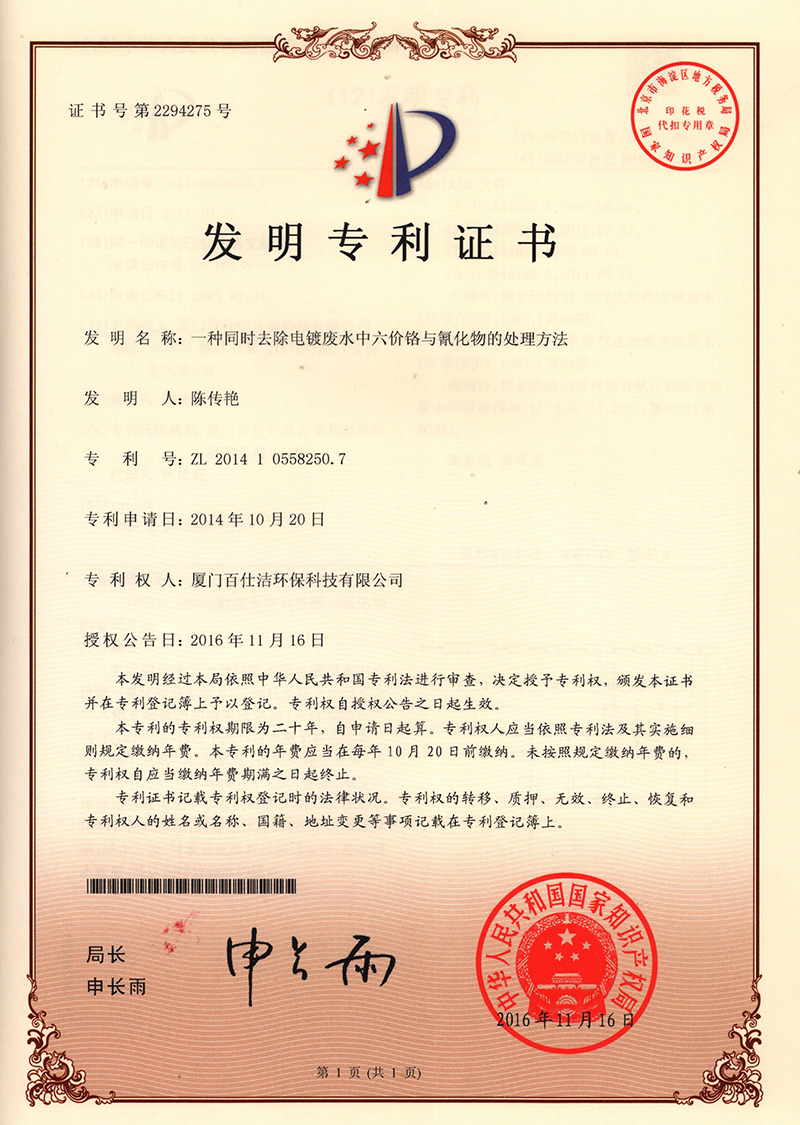 發(fā)明專利證書(shū)