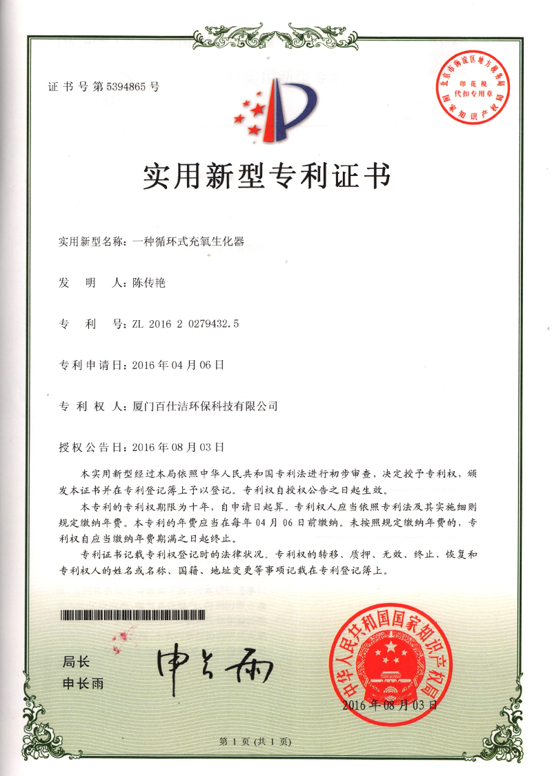 實(shí)用新型專利證書(shū)